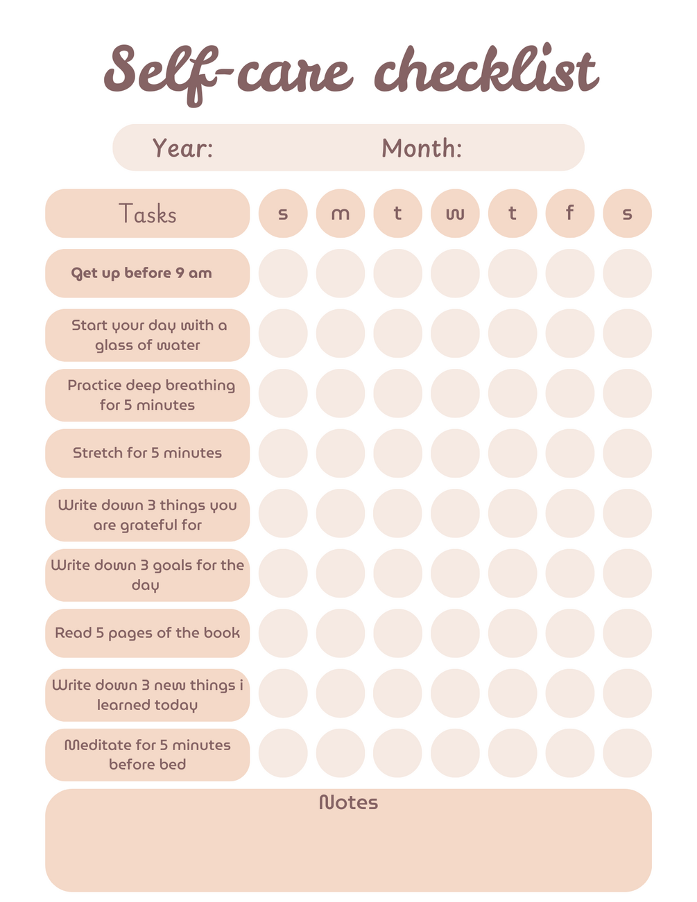 Here a digital self-care checklist template for you ! You can use this template every day to keep yourself on track and always be motivated to stick to your self-care goals!